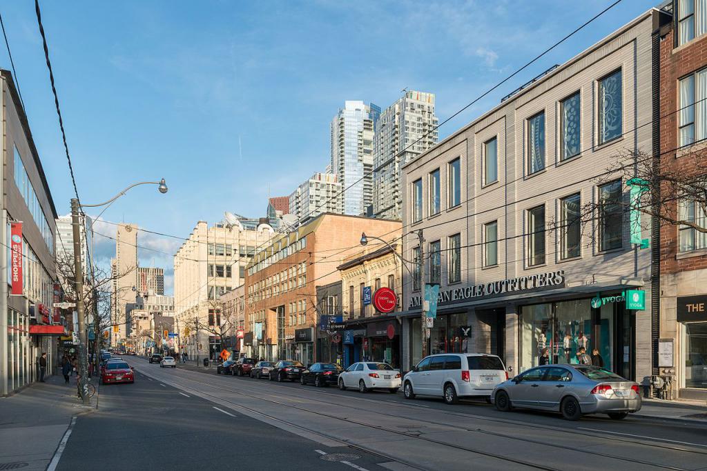 Стоит отметить, что улица также известна своими этническими кварталами. Первым был создан квартал Клертаун, где жили ирландские иммигранты в районе Квин-стрит-Вест и Батерст-стрит.