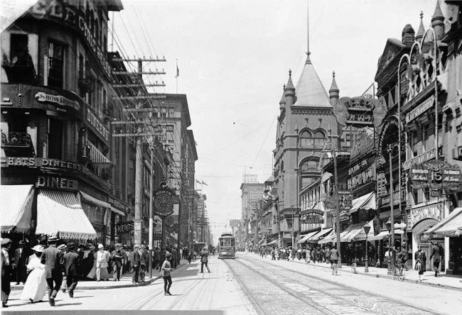В XIX столетии сюда начали чаще приезжать люди из других стран. Многие из них оставались здесь жить. В связи с ростом населения центральная улица города Янг-Стрит стала идеальным местом для шопинга, культурного отдыха, обучения и проживания. Здесь появились торговые центры, кафе, рестораны, школы и жилые здания, а рядом были продолжены дороги Дандас-стрит та Йонг-стрит. Со временем Янг-Стрит стала одной из немногих улицы, куда всегда приходило много местных жителей и туристов.