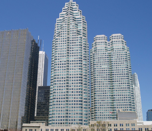 Хмарочоси — головні об’єкти інфраструктури в Торонто. Їх почали будувати з 1894 року. Першим найвищим будинком був семиповерховий банк Beard заввишки 25,38 м. Будівлю назвали на честь Джорджа Берда, який був землевласником ділянки, де вона була збудована. Але в 1935 році банк знесли, а замість нього на тому самому місці розмістили заправку.